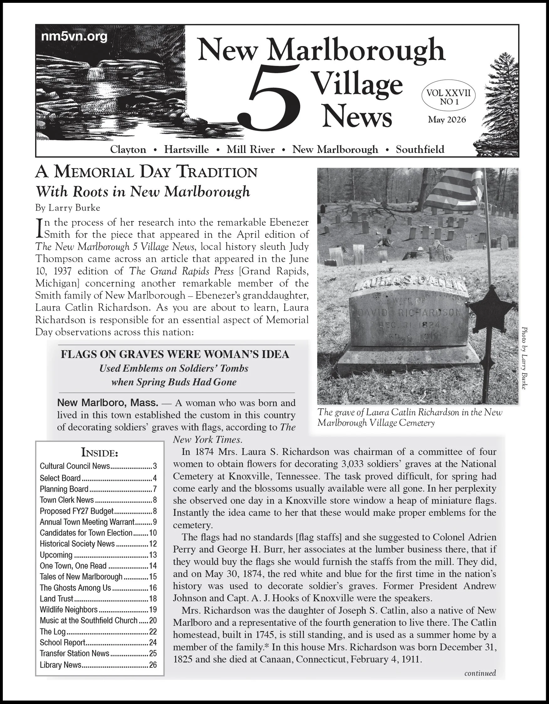 Also: A warrant article to redefine the Village Green’s size; “Town business is your business” – Select Board and Planning Board news; a change of plan for the village district construction pause bylaw; kudos to one of our oldest residents and two young academic achievers; a preview of the 2026 Meeting House season; reports on the transfer station and the American Legion Post 350; a look into SBRSD budget uncertainties; a delicious recipe; and more!